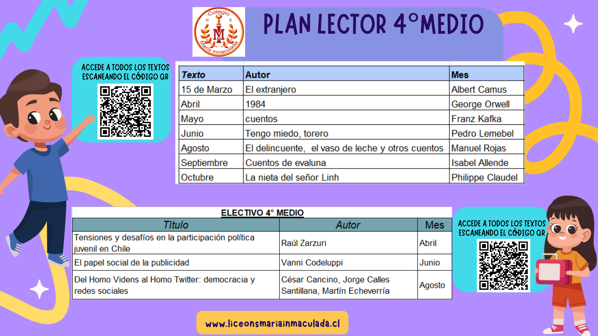Plan lector y Lista de útiles por Nivel 2025