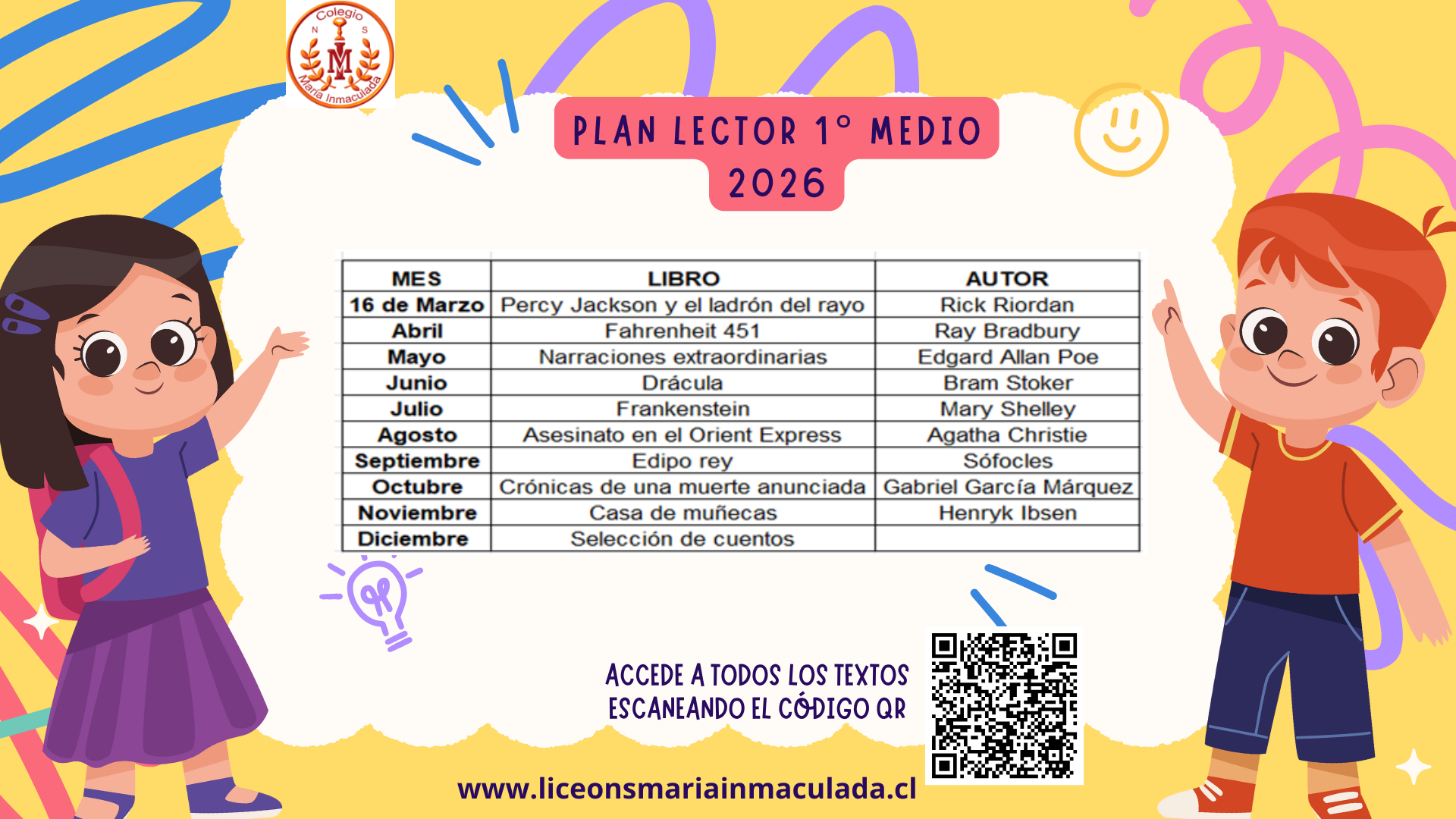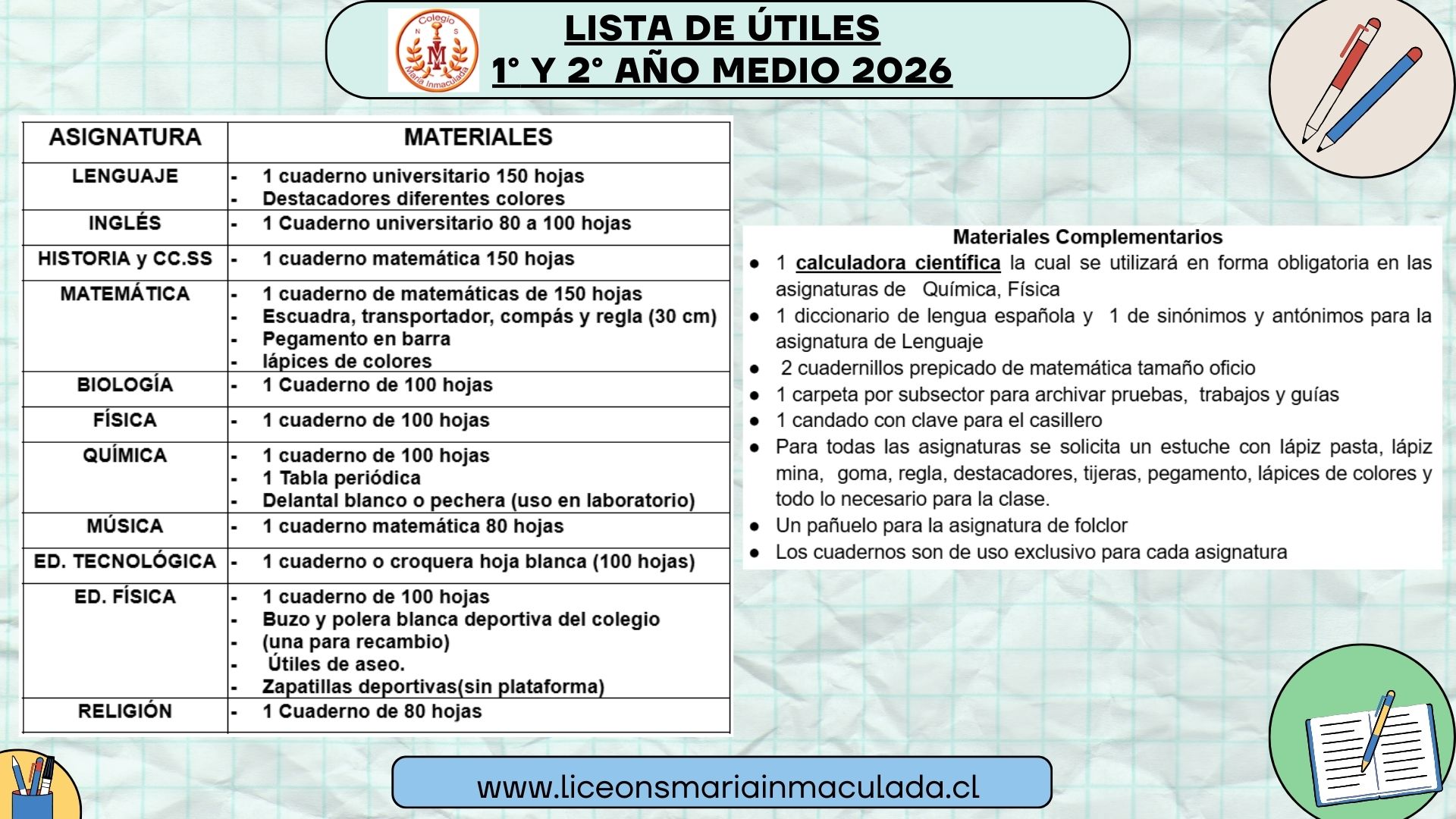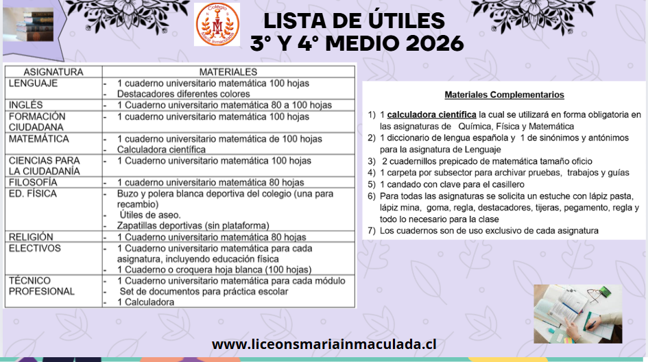 Lista de útiles y Plan lector por Nivel 2026
